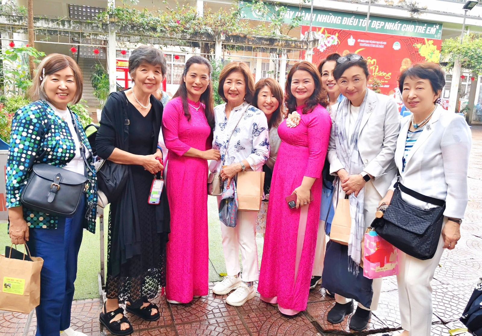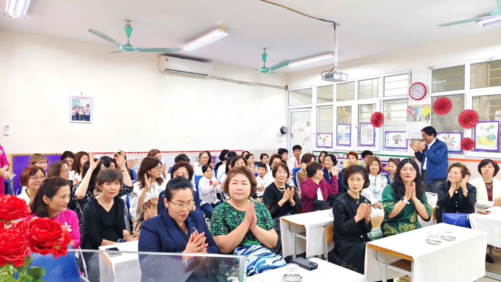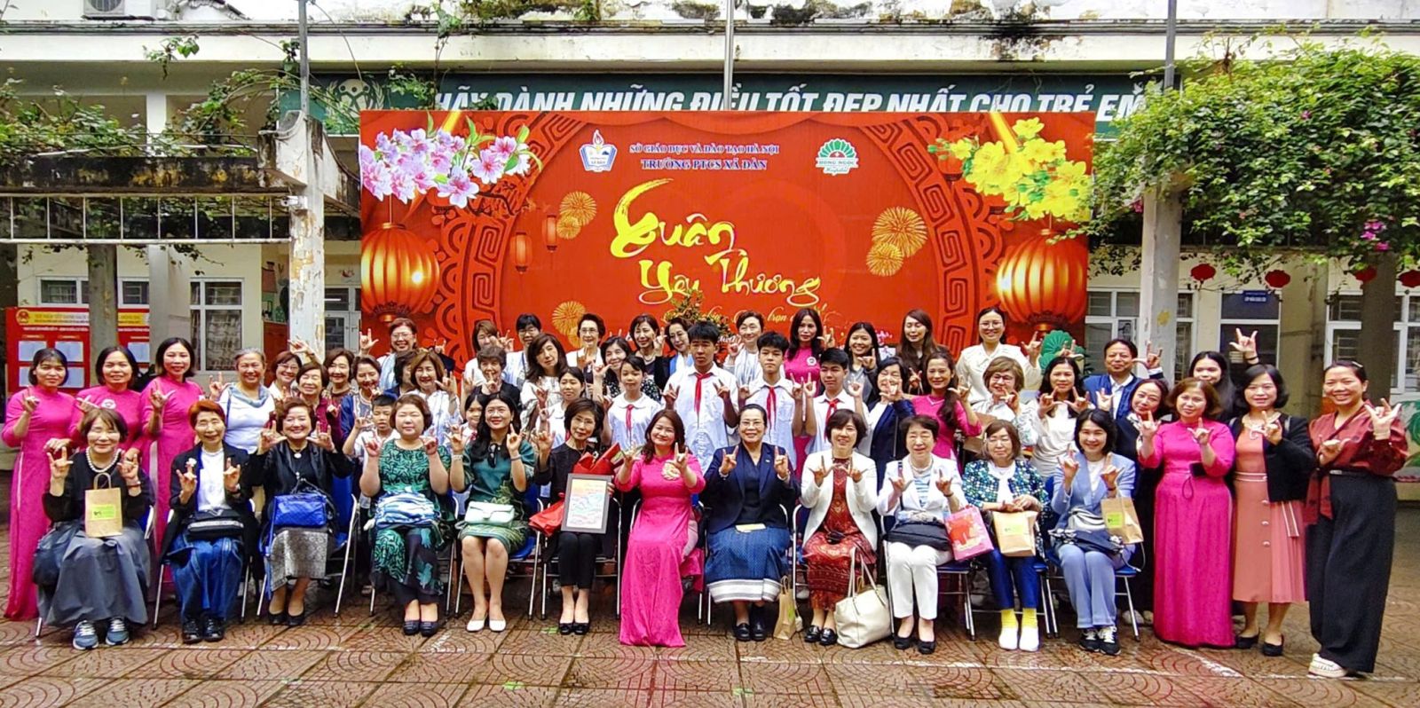 Nhà trường vinh dự được chào đón: Bà Nakasone Mariko – Chủ tịch Hội ALFS; Bà Thái Thu Hồng – Phu nhân Đại sứ Việt Nam tại Nhật Bản; Bà Kindavong Phimpha – Phu nhân Đại sứ nước CHDCND Lào tại Nhật Bản; Bà Momoe Fritz – Phu nhân Đại sứ nước Micronesia tại Nhật Bản; Cùng các thành viên tâm huyết trong đoàn.