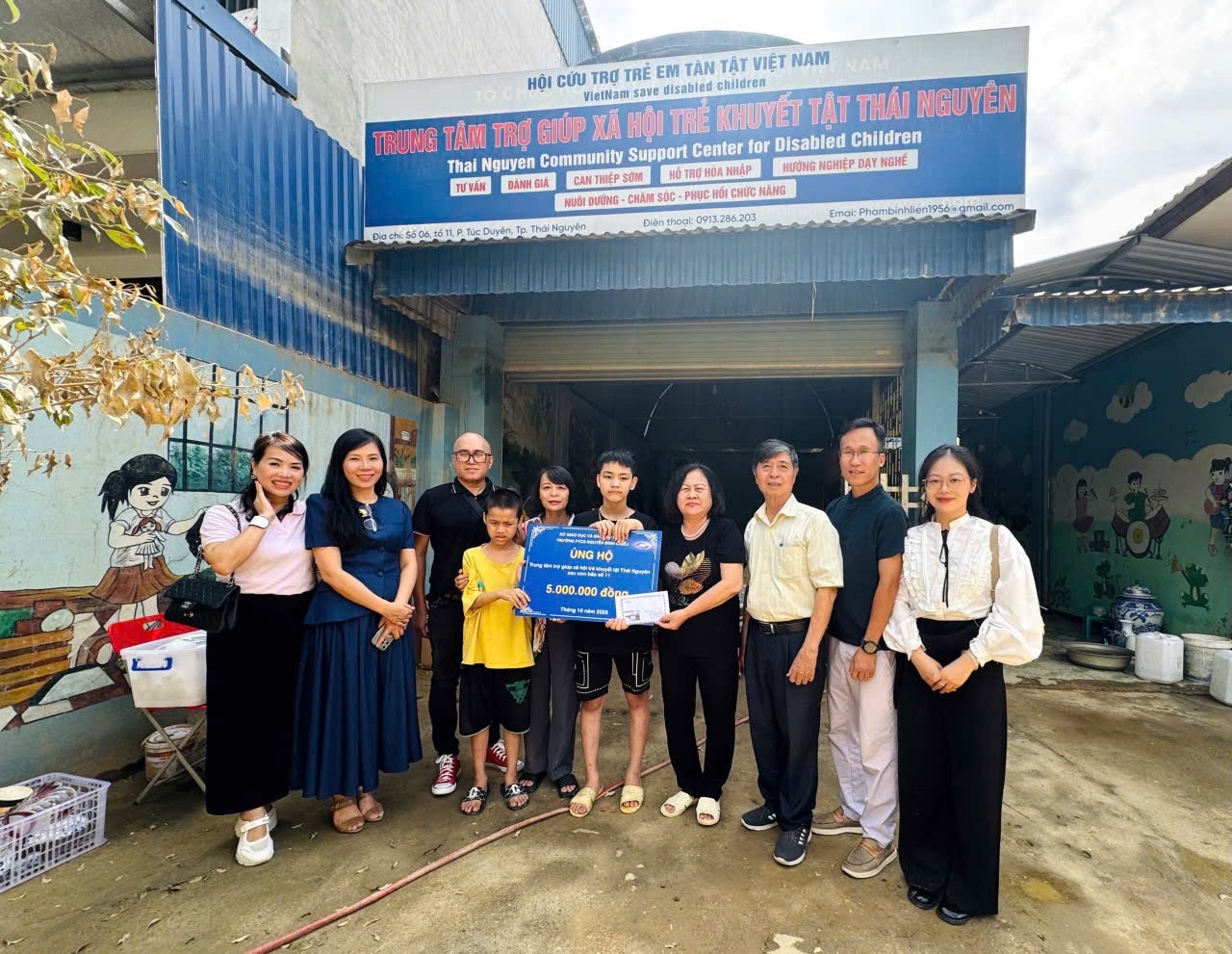 Đoàn công tác của Hội Cứu trợ trẻ em khuyết tật TP Hà Nội và Trường PTCS Nguyễn Đình Chiểu do ông Phạm Hữu Quỳ, Chánh Văn phòng Hội và bà Nguyễn Thị Tuyết Mai, UVBCH Hội, Hiệu trưởng Trường PTCS Nguyễn Đình Chiểu đã đến chia sẻ, trao quà Trung tâm Hỗ trợ và Phát triển giáo dục hòa nhập và Trung tâm trợ giúp xã hội trẻ khuyết tật tỉnh Thái Nguyên