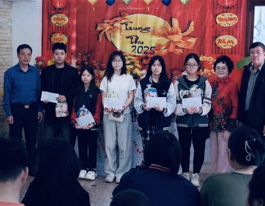 Ảnh1: Ông Bùi Văn Tuấn - Phó chủ tịch Hội trao quà các cháu có thành tích học tập xuất sắc
